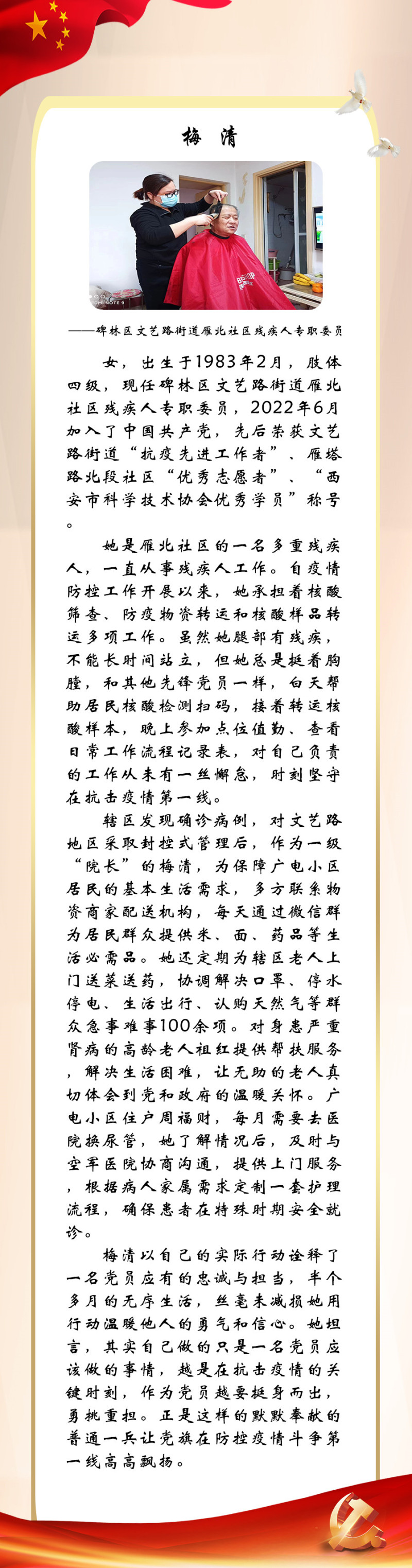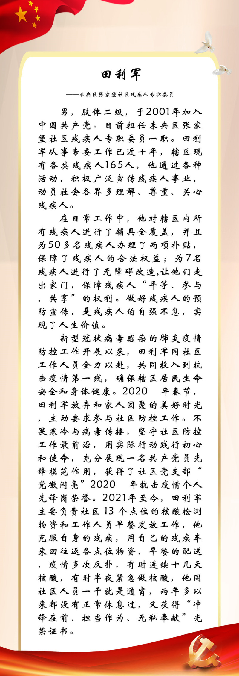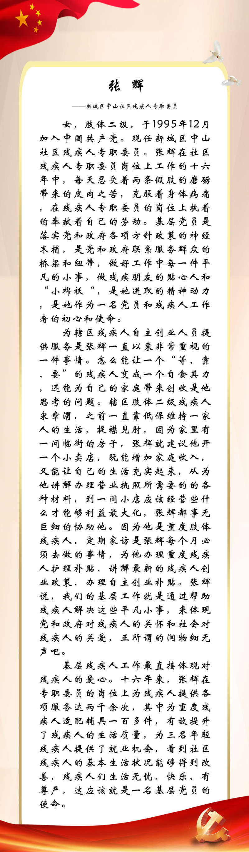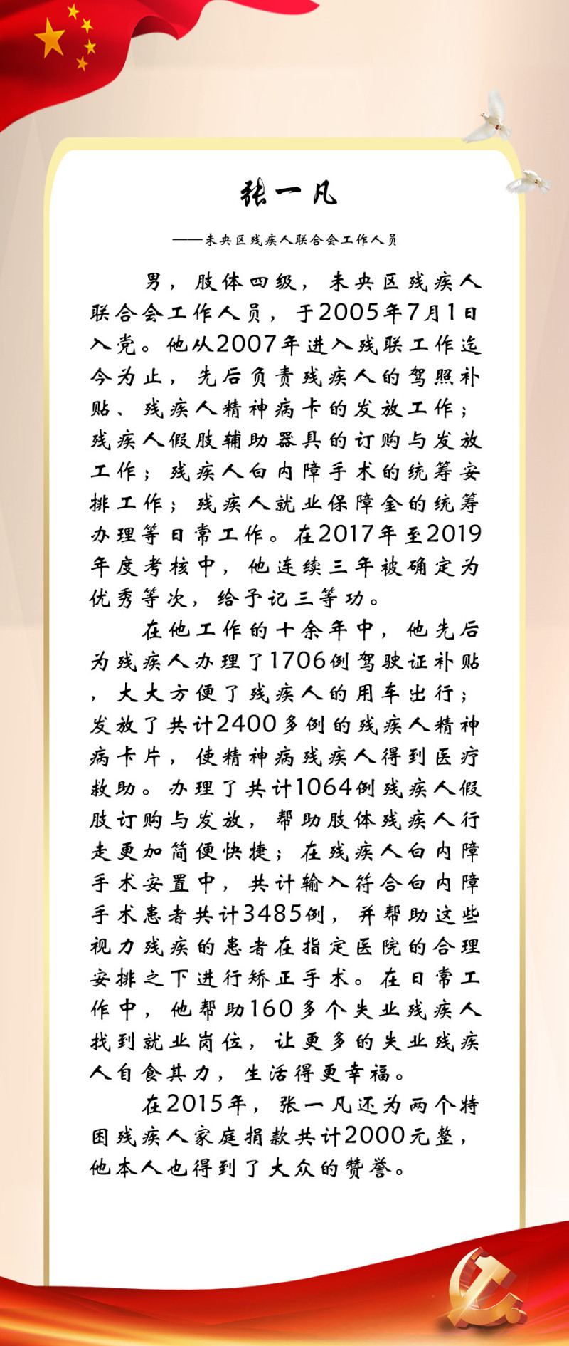 今年是党的二十大召开之年,也是残疾人就业宣传年。为迎接中国共产党第二十次全国代表大会的胜利召开,西安市残联开展了“喜迎二十大 永远跟党走”百名党员为残疾人送温暖活动,为我市100名已就业创业的残疾人共产党员所联系结对帮扶的残疾人朋友捐赠陕西广电电视套餐年卡。同时,我们对部分残疾人共产党员的简要事迹进行展播,以此来迎接二十大的胜利召开!