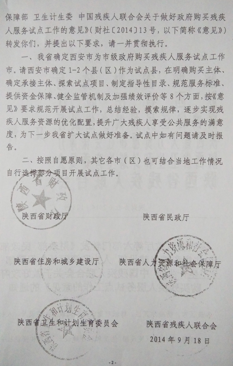 财政部 民政部 住房城乡建设部 人力资源社会保障部 卫生计生委 中国残疾人联合会关于做好政府购买残疾人服务试点工作的意见