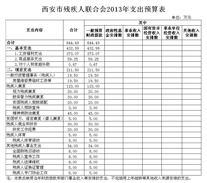 西安市残疾人联合会2013年支出预算表