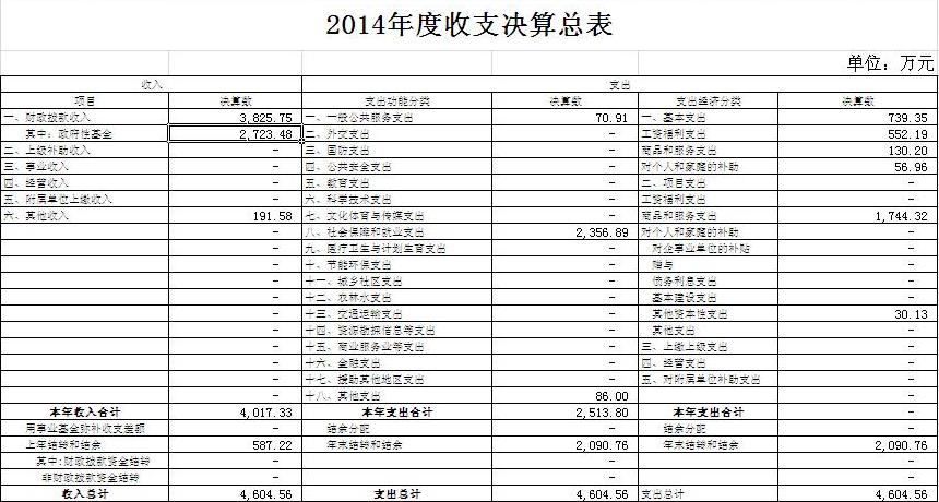 (一)2014年度收入支出决算总体情况