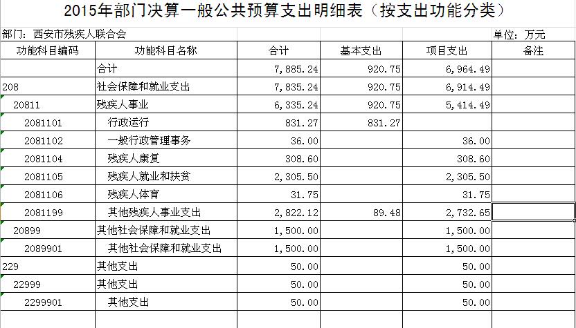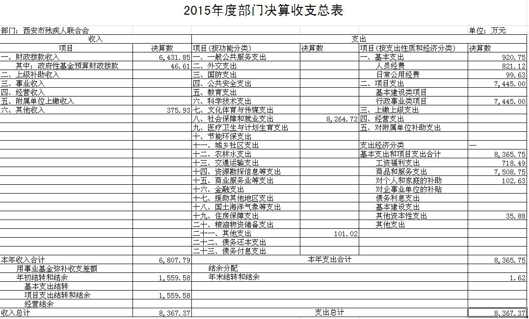 二、2015年西安市残疾人联合会部门决算报表。