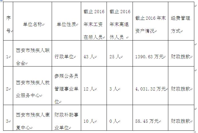 纳入西安市残疾人联合会2017年部门预算编报范围的单位详细情况见下表: