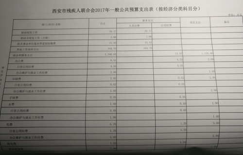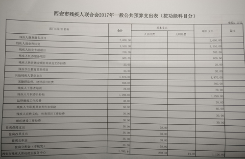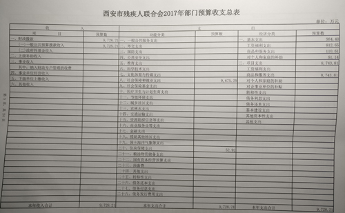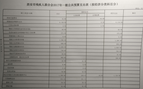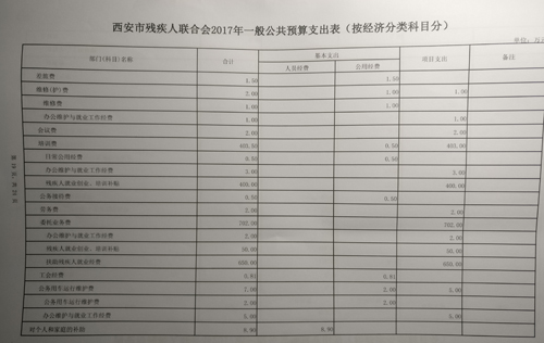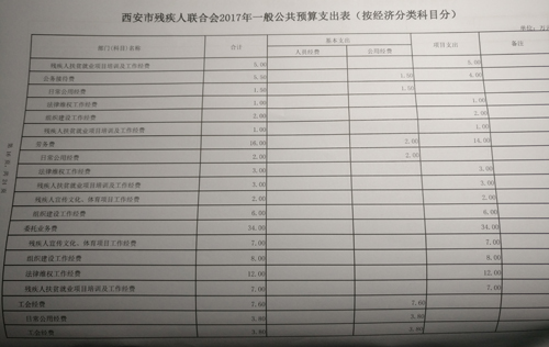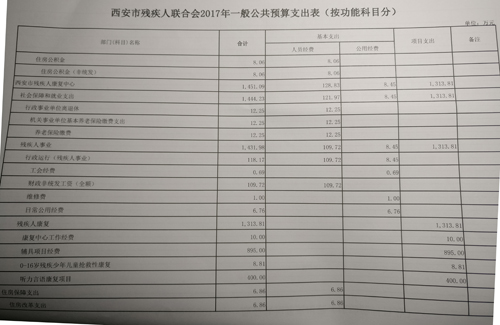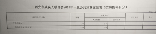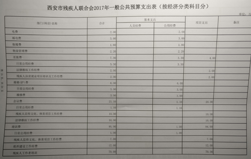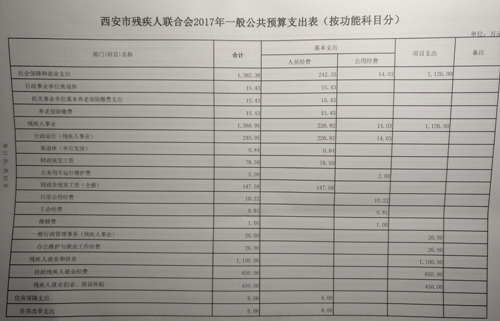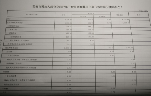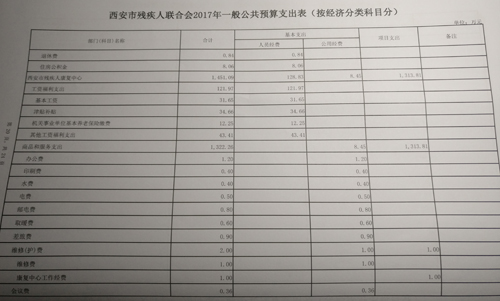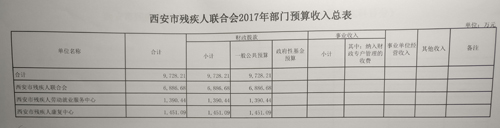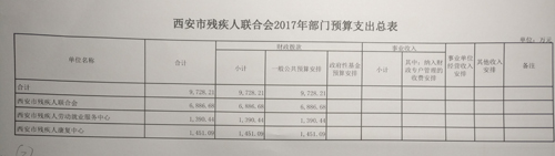 2017年度西安市残疾人联合会预算公开及“三公”经费预算公开