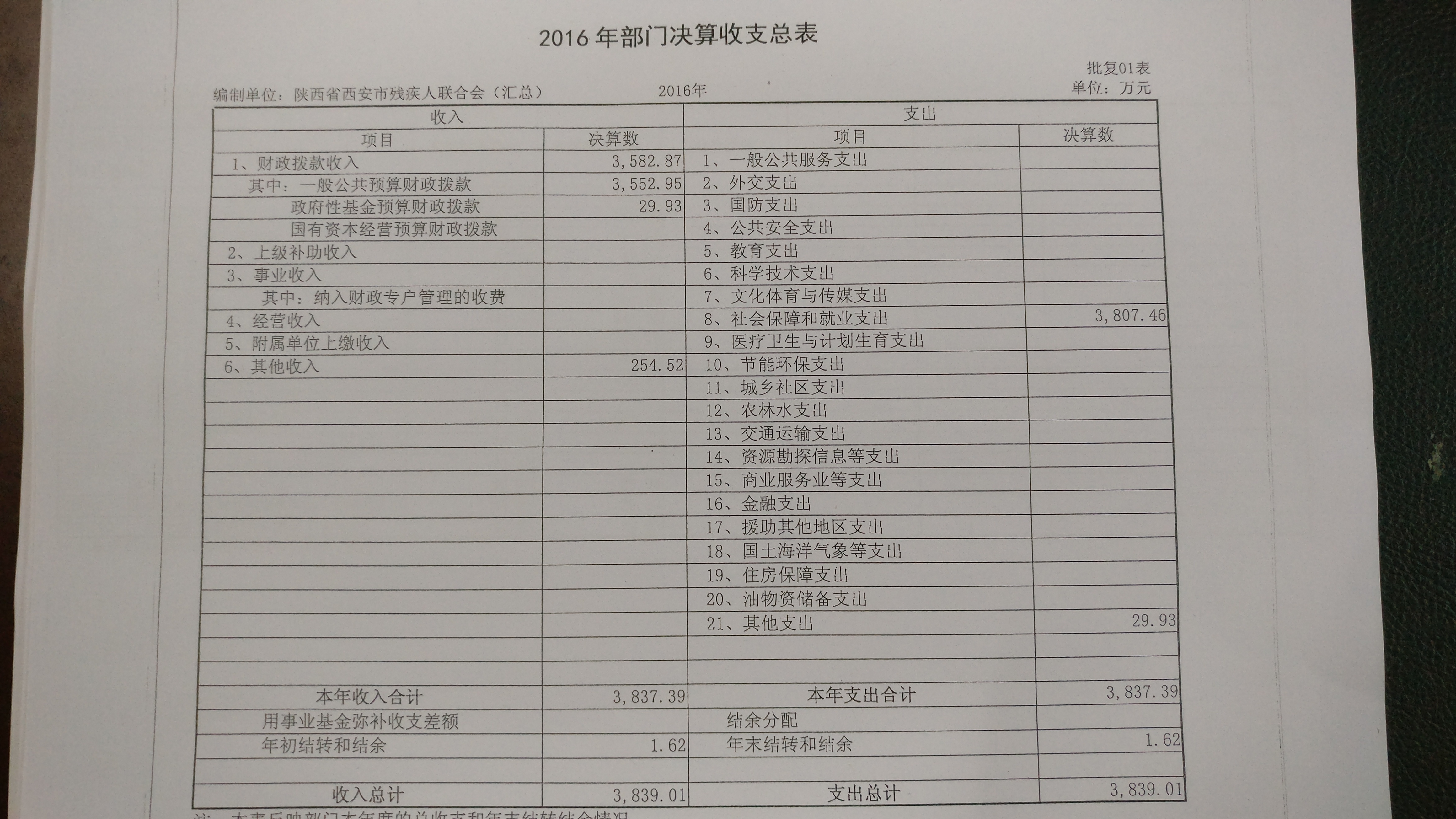 二、2016年西安市残疾人联合会部门决算报表。
