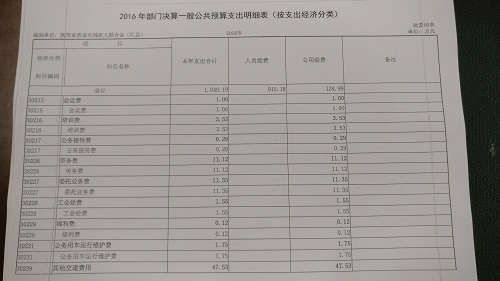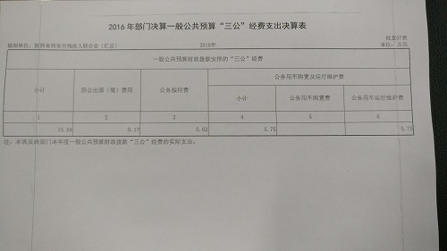 2016年残联公务车辆购置0台,经费支出0万元,与去年同期没有变化;公务车辆运行维护费用5.75万元,对比去年同期支出减少15.33万元。