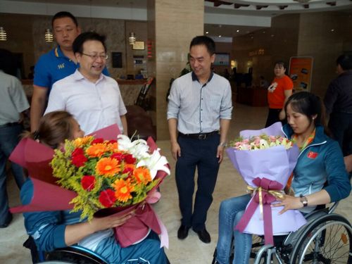 参加里约第十五届残奥会的西安市户县射箭选手吴春艳以一金一银两枚奖牌、周至县投掷铁饼选手董飞霞以一枚金牌的骄人战绩,为祖国和家乡人民争得了荣誉。9月23日上午,市残联理事长李忠良、副理事长何永国、宣文处处长王建民、户县残联理事长周建民、周至县残联理事长何周来,对载誉而归的我市两名运动员献上鲜花,表示热烈祝贺。