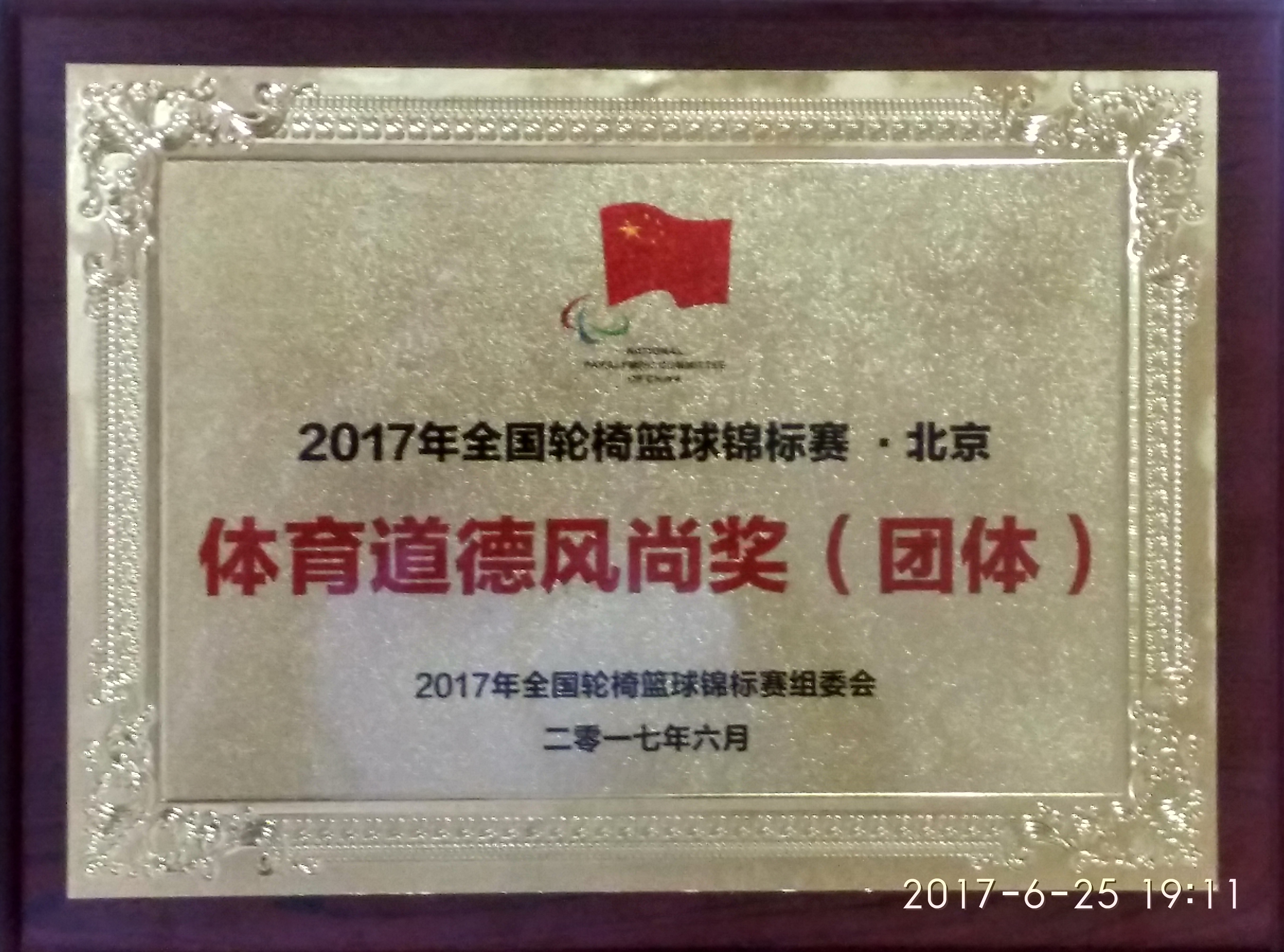 6月20日至26日,西安市男子轮椅蓝球队代表陕西省前往北京,参加了在中国残疾人体育运动管理中心举行的2017年全国轮椅蓝球锦标赛。全国九支队伍参加了比赛,经过激烈角逐、奋力搏杀,最终北京市、广东省分别夺得冠亚军,陕西队获第八名和《体育道德风尚奖(团体)》奖牌鼓励。本次活动由中国残联、中国残奥委会主办,中国残疾人体育运动管理中心具体承办。