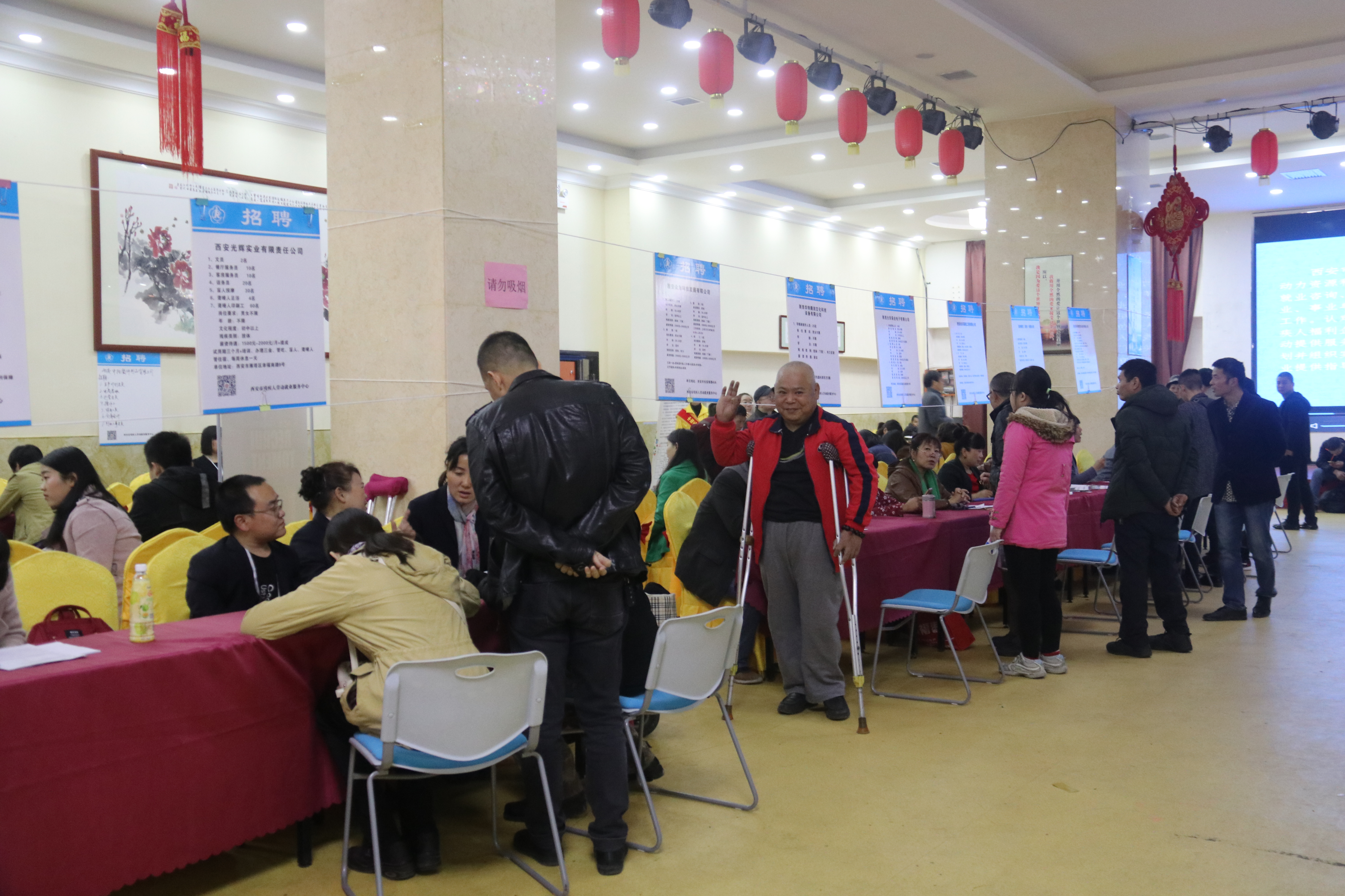 为了提升残疾人就业服务工作水平,就业中心在招聘会现场首次使用LED滚动大屏,向前来求职的残疾人展示了我市残疾人就业工作服务内容、服务事项、相关扶持政策以及招聘企业的宣传简介;在招聘海报上印刷了西安市残疾人就业服务的公众微信号;招聘会现场还为残疾人和用人单位提供相关就业扶持政策和职业技能培训咨询服务。