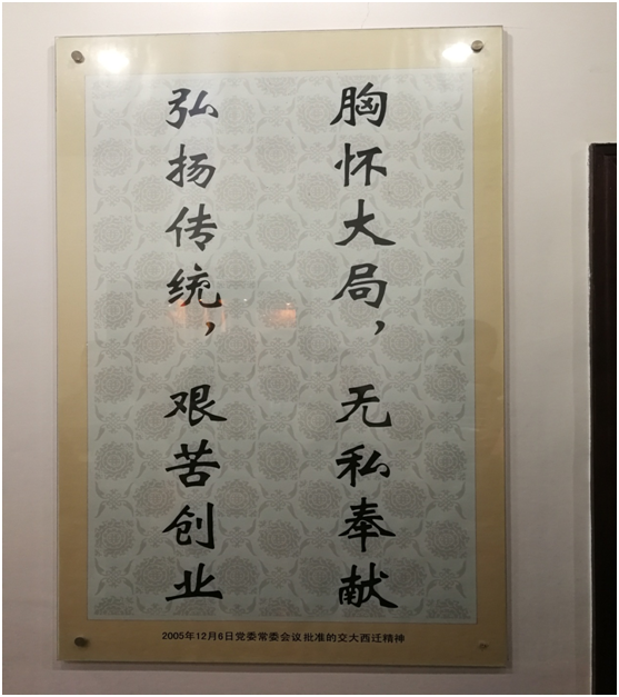 参观过程中,60多年前“向科学进军,建设大西北”的口号犹如耳边,6000多名交大师生响应国家号召,从黄浦江畔的十里洋场奔赴渭水之滨的千年古城,扎根黄土地教书育人,开启了一个建设西部的风云甲子,留下了一笔难得的精神财富。