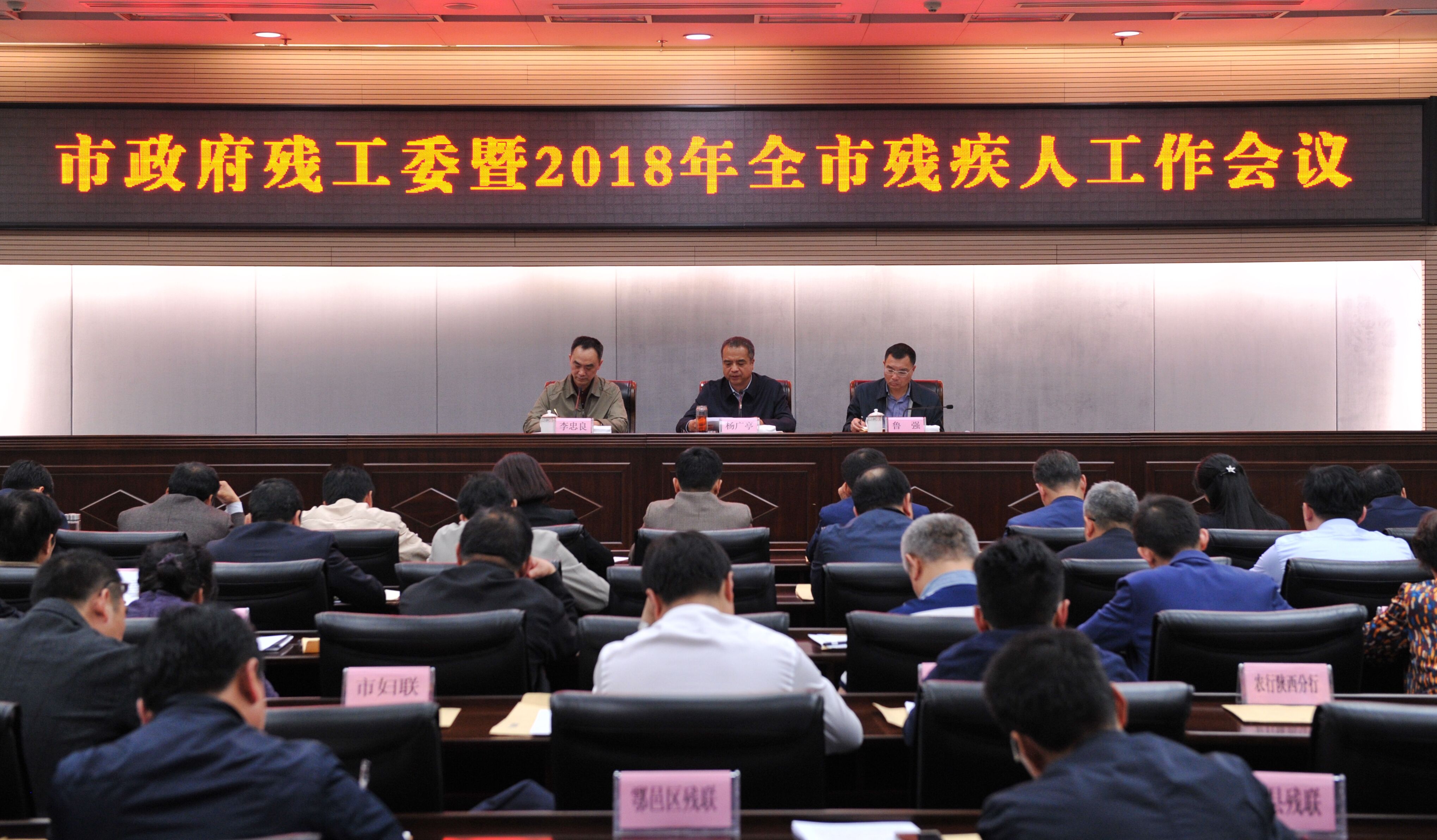 4月23日下午,市政府残工委暨2018年全市残疾人工作会议在市政府会议室召开。市政府残工委副主任鲁强主持会议,市残联主要领导、市政府残工委成员单位分管领导,各区县政府残工委主任、残联理事长,国际港务区管委会分管领导及负责残疾人工作部门负责人,市残联相关处室负责人等80余人参加。