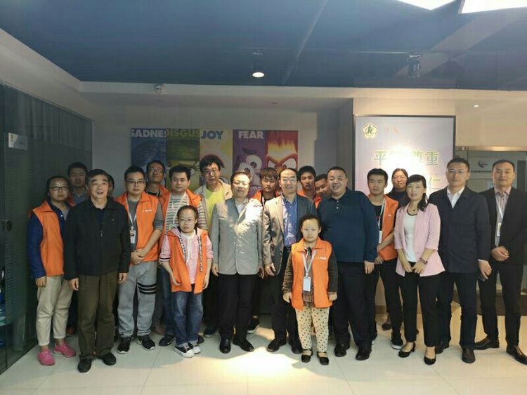 调研结束时,安理一行与雁塔区残联领导、鸿鹰公司董事长及在公司上班的残疾人合影留念。