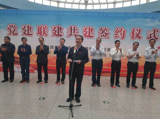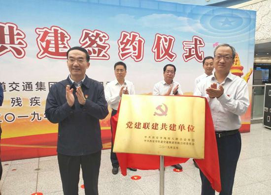 安文中理事长在仪式讲话中指出,在第二十九次“全国助残日”来临之际,举办市残联与市轨道交通集团党组织共建活动签约仪式,是双方以党建引领助残服务的一次有益尝试,更是对进一步完善地铁无障碍设施建设、提升残障人士出行服务质量、展示西安地铁“窗口”文明形象,具有重要意义。市残联将以此次签约仪式为契机,加强与西安地铁的合作,认真履行协议,共同为残障人士创造更加便利的出行环境。随后,市残联党组书记、理事长安文中和市轨道集团党委委员、副总经理杨军共同揭牌:中共西安市残疾人联合会党组和中共西安市轨道交通集团有限公司委员会,为党建联建共建单位。