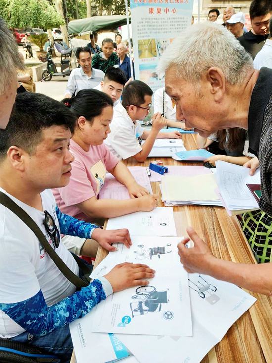 6月10日,市残疾人康复中心带领评估机构辅具工程师们来到灞桥区席王街办汽配社区院内开展2019年西安市残疾人辅具个性化适配补贴工作。截止11日,两天时间共为灞桥区263名残疾人评估适配各类辅具268件。