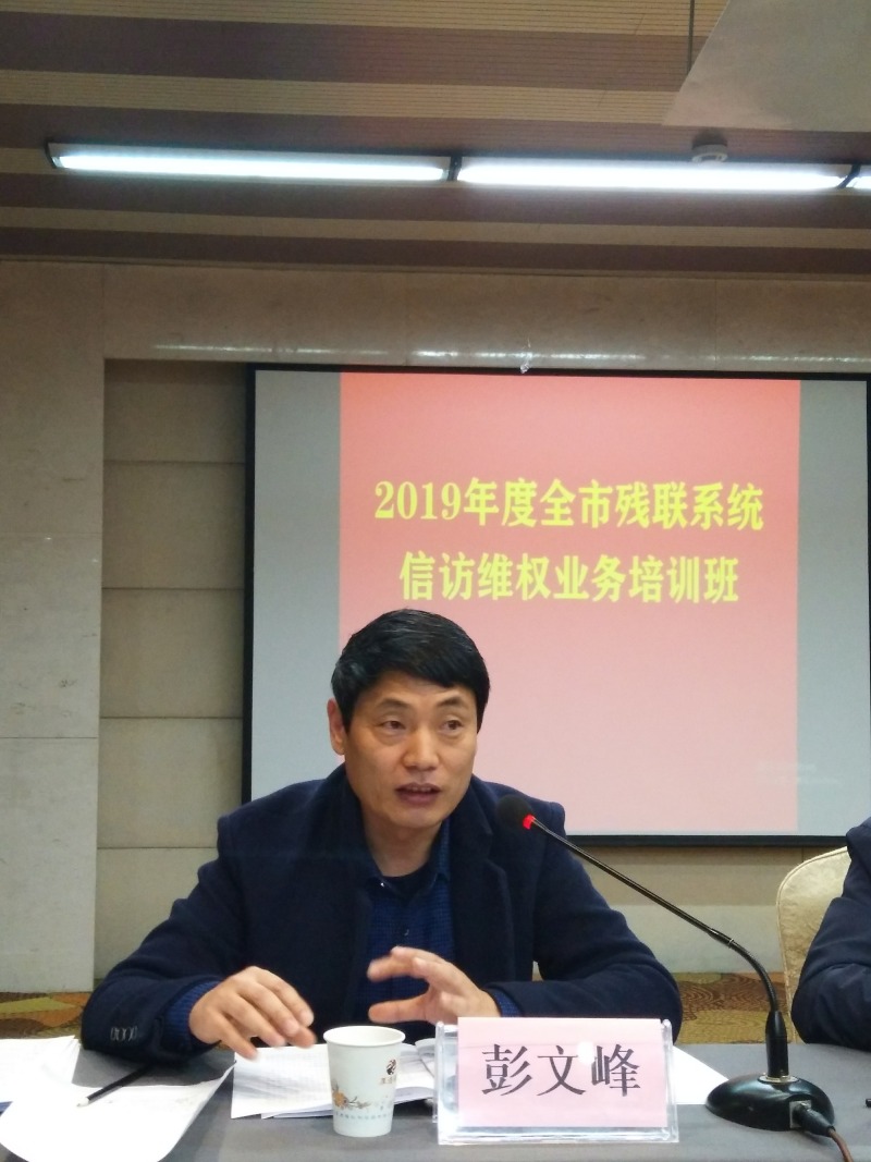 图为:市残联维权处处长彭文峰作动员讲话