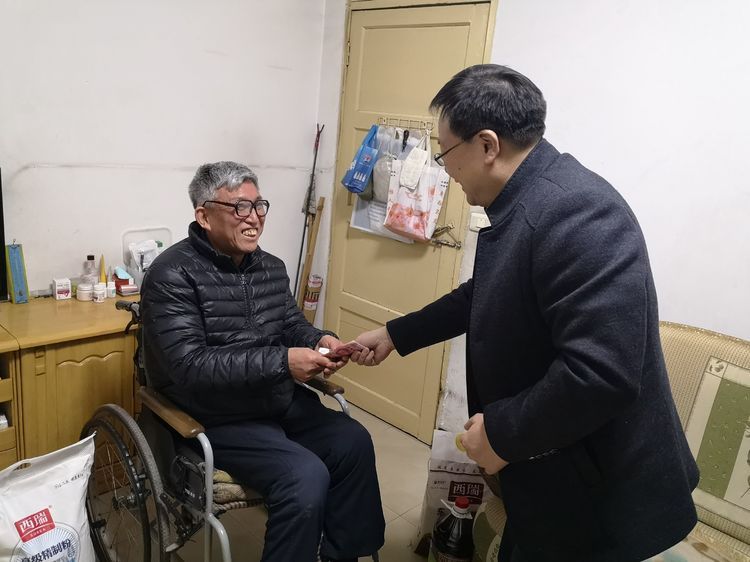 1月15日,在灞桥区残联理事长李顺民的陪同下一起看望电建四公司残疾人李仲凯、张俊民,亲手将慰问金送到他们手上,询问其冬季家庭取暖、康复、儿女就业等情况,并鼓励他们说,党和政府始终惦记着咱们残疾人朋友,现在政策好了,有困难大家一起克服,并嘱咐区县残联和街道办残疾人专委随时走访,及时了解其家庭情况并给予帮助。
