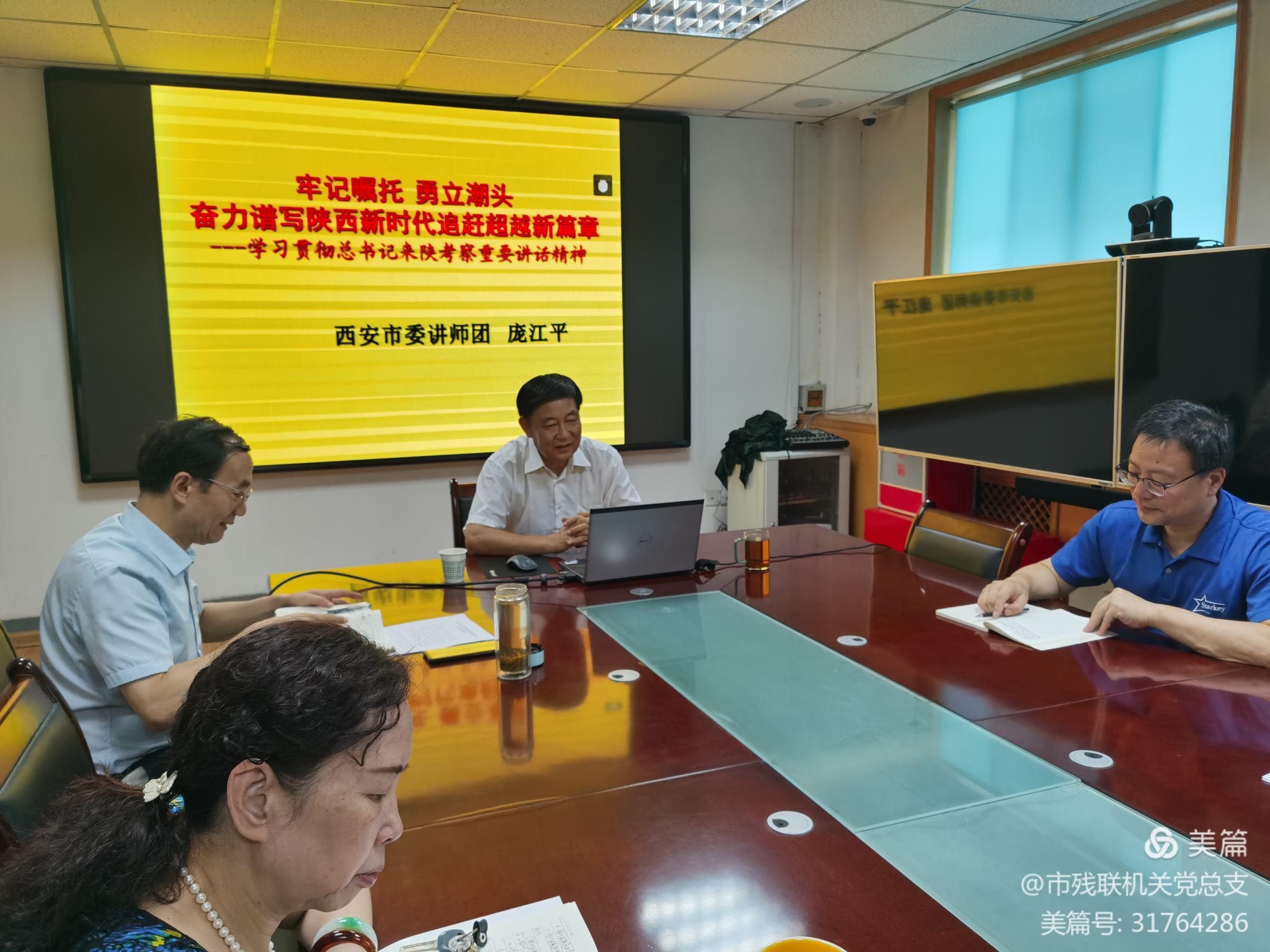 庞教授此次宣讲题目为《牢记嘱托、勇立潮头,奋力谱写新时代陕西追赶超越新篇章》,我会机关全体党员干部和下属两个中心副处级以上干部参加了宣讲活动。
