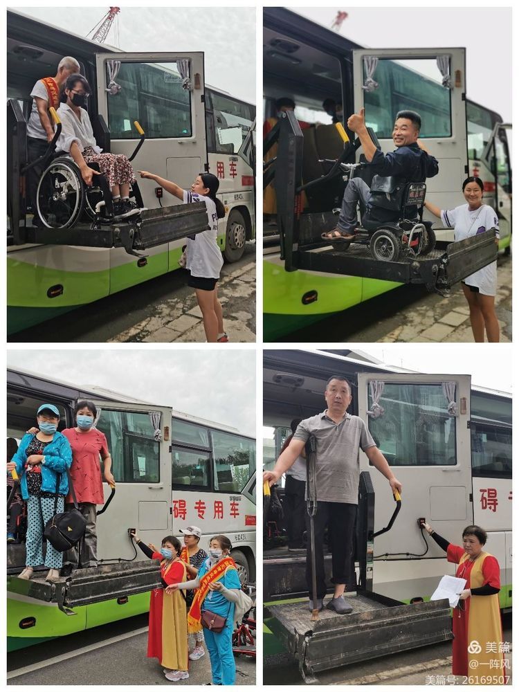 无障碍大巴车真方便,重度残疾人坐着轮椅上大巴,方便极了 。