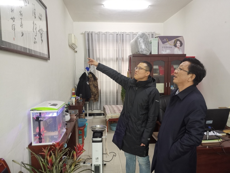 图为:党组书记赵寅科走进党员活动室、村康复室和驻村工作队办公室等场所