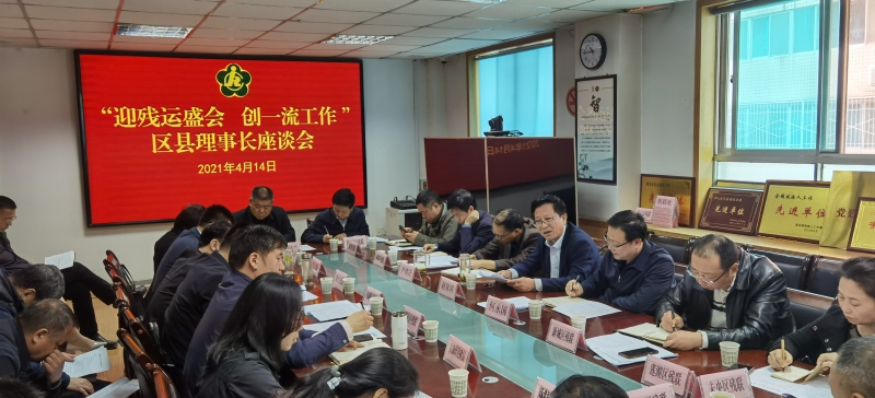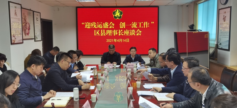 2021年4月14日上午,市残联在机关二楼会议室召开“迎残运盛会 创一流工作”区县理事长座谈会。市残联党组书记、理事长赵寅科同志主持会议,市残联班子成员、各区县残联理事长、相关开发区分管残联业务的领导、市残联机关各处室及两个中心负责人等30人参加。