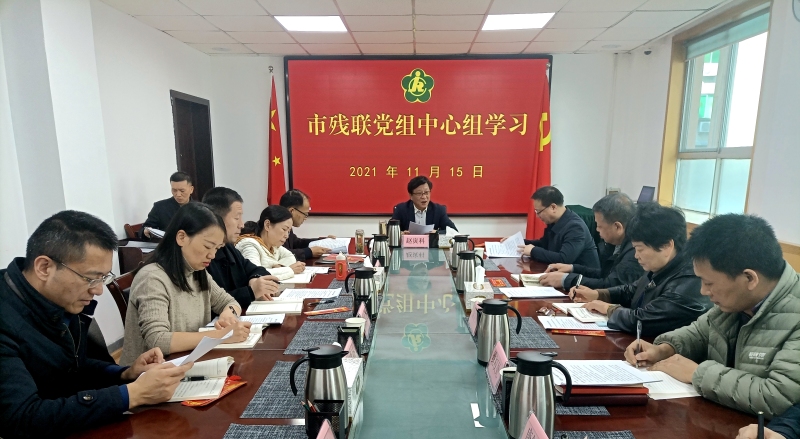 11月15日上午,市残联党组书记、理事长赵寅科主持党组理论学习中心组2021年第25次集体学习,专题学习党的十九届六中全会精神。