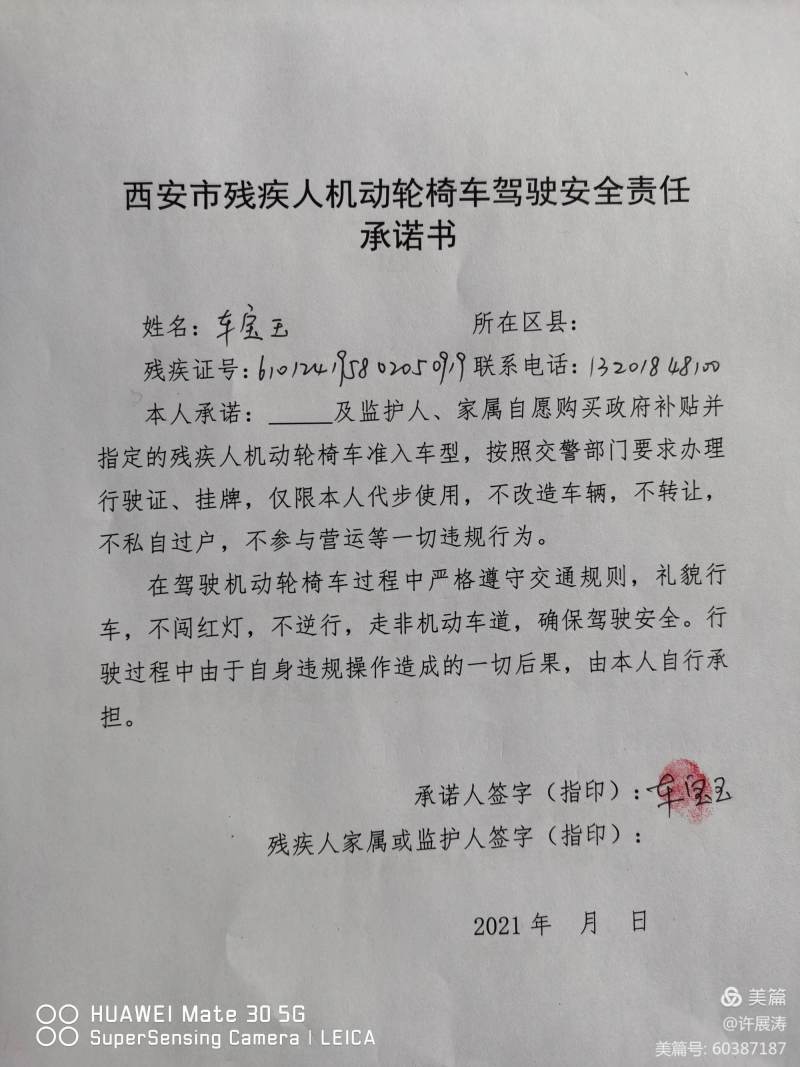 残疾人现场签订《机动轮椅车安全使用责任承诺书》