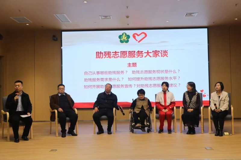 来自陕西师范大学心理学院、陕西省康复医院雁塔康养中心、西安广播电视台主持人志愿者服务队、陕西省青年志愿者协会的,分别从心理、身体、文化、助残服务体系四个维度阐述了助残服务形式、目标、成效。