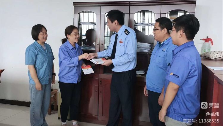 图为:为企业发放税费政策和疫情税费优惠政策宣传册