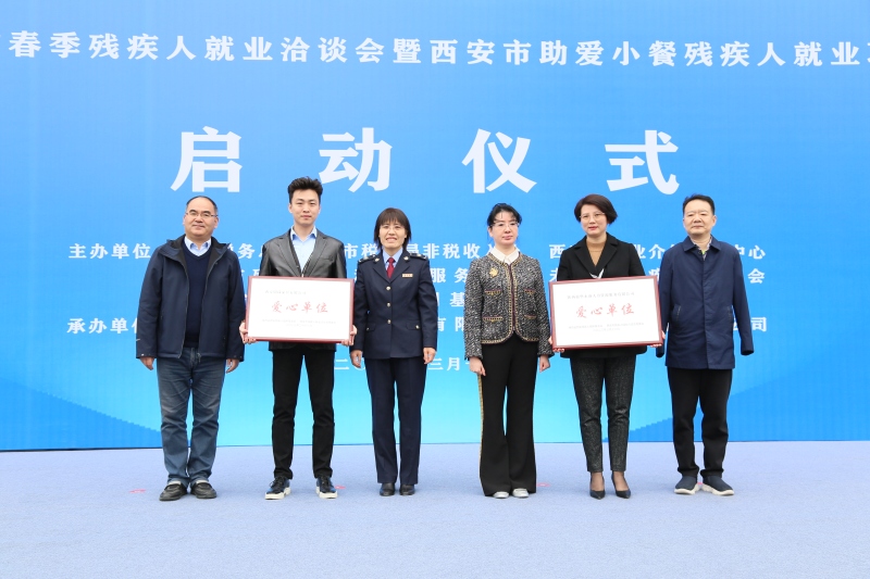 洽谈会上,主办方向陕西强华永盛人力资源有限公司、西安明珠家居有限公司等企业颁发“西安市残疾人就业洽谈会公益活动爱心单位”牌匾。