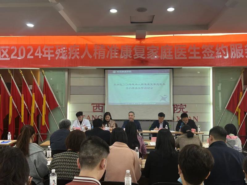 2024年4月10日上午,未央区召开2024年度残疾人精准康复家庭医生签约服务工作启动会。区残联党组书记、理事长张辉同志,区卫健局副局长刘胜敏同志,各街道分管领导,各街道社区卫生服务中心主任及全区相关残疾人康复服务机构负责人参加。
