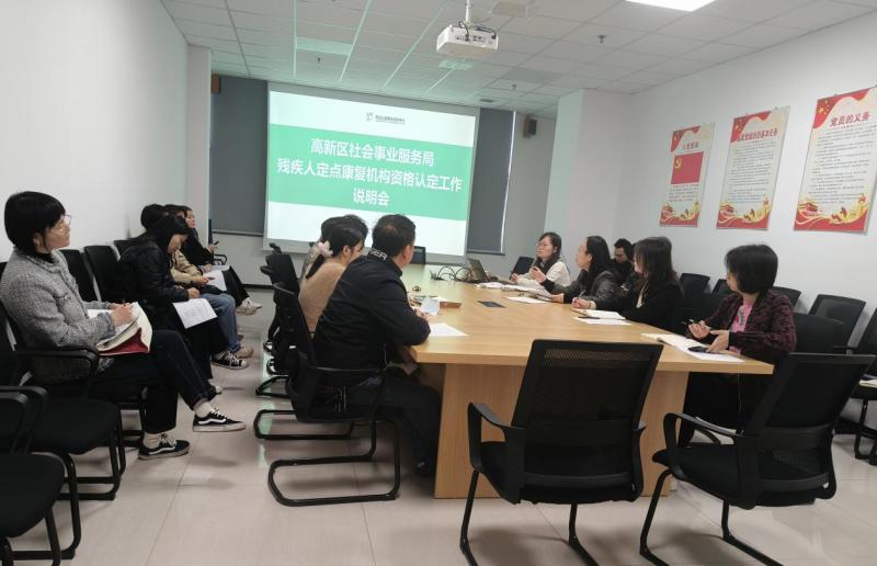 为规范残疾人康复定点服务机构资格认定程序,促进康复服务资源优化配置,2024年11月1日上午,高新区社会事业服务局组织召开残疾人定点康复服务机构资格认定培训会,旨在为2025年残疾人定点康复服务机构资格评审认定工作解读相关准入标准。参加会议的有社会事业服务局残疾人管理服务部工作人员、第三方评估机构负责人、意向申请机构负责人和工作人员近20人。