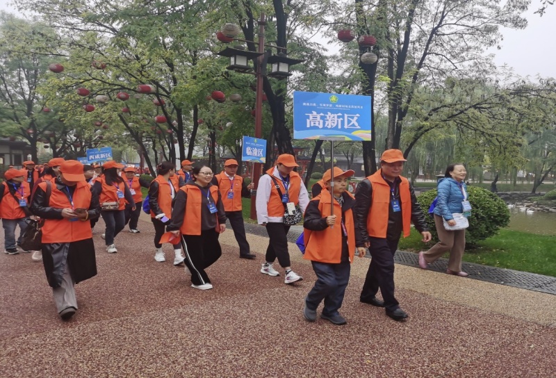 在大唐芙蓉园紫云楼广场上,残疾人朋友们穿着靓丽显目的服装整齐列队,满怀着兴奋与热情。随着一声号令响起,大家迫不及待的出发,踏上步道,一边欣赏着沿路美丽的风景,一边感受健步走运动带来的欢乐体验。一路上大家有说有笑,相互加油打气,大家之间的支持与陪伴给了身边人更多的动力与温暖。