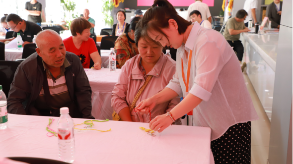 在专业老师耐心细致的指导下,一场充满创意与温情的手工体验课在活动室展开。每一位老师用心辅导手工编织,并将承载着祝福的手工纪念品赠送到每个人手中。大家顺利完成作品时的灿烂笑容,无不诉说着艺术疗愈的力量与集体陪伴的温暖。