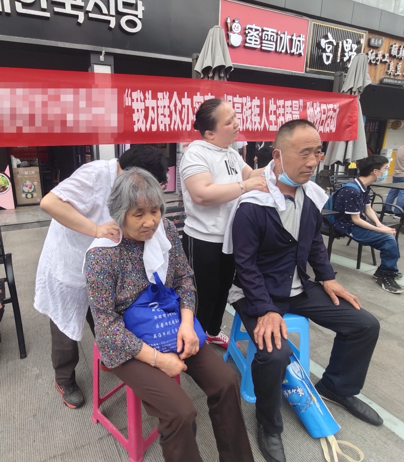 活动现场,西安爱尔眼科医院5名医务人员向群众提供视力检查、眼部疾病筛查、雾化机器治疗体验等服务,并向过往群众发放视力保健知识宣传资料;盲人协会两名专业按摩技师为群众提供保健按摩服务;残健同行志愿者向过往群众发放康复救助、就业培训等雁塔区助残惠残政策宣传和《无障碍环境保障标准》折页。