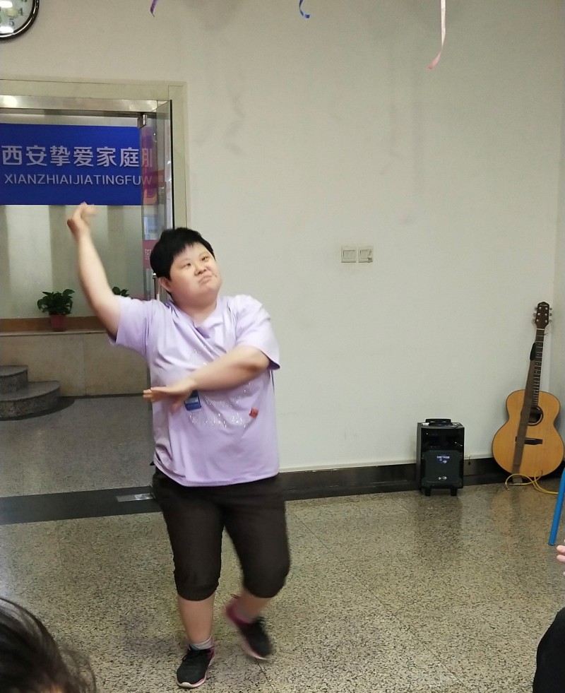 志愿者和居家托养残疾人朋友们齐聚一堂,用饱满的感情、激昂的歌声、优美的舞姿抒发对党、对祖国的热爱。盲人赵京的朗诵,抑扬顿挫、慷慨激昂、声情并茂,抒发了心中对党、对祖国的无限深情。唐氏患者白茹的一支新疆舞蹈,铿锵优美的舞步,舒展灵活的动作,舞出了活力,跳出了自信。
