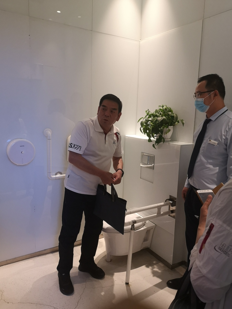 检查组一行首先在MOMOPARK购物商场集合,随后分为四组进行检查。第一组检查城市道路、公共卫生间、广场、无障碍停车位;第二组检查酒店、商场、学校、政府机关;第三组检查医院、景区、银行;第四组检查辖区无障碍信息建设。检查过程中,每个小组都对各个公共场所内的无障碍衔接、盲道建设、无障碍停车位、公厕、无障碍标识、缘石坡道、无障碍电梯、无障碍信息交流的语音等设施进行了体验式督导检查。