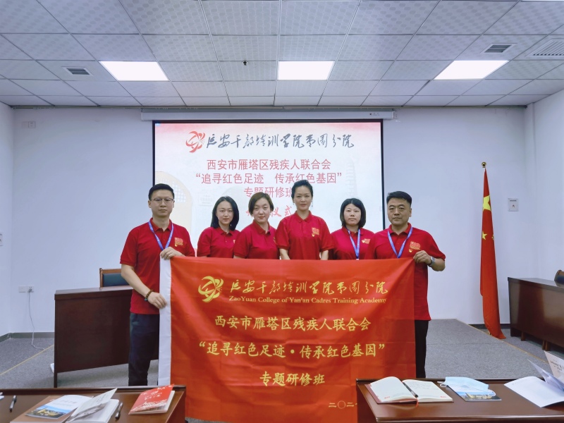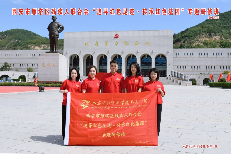 为扎实推进党史教育,坚定理想信念,寻找红色记忆,传承红色基因,树立自力更生、艰苦奋斗的创业精神,7月2日至3日,雁塔区残疾人联合会党支部联合雁塔区人力资源和社会保障局党委,共三十余名干部赴革命圣地延安,参加“追寻红色足迹·传承红色基因”专题研修班,到老一辈无产阶级革命家战斗的地方,实地感受他们伟大的信念、崇高的理想。