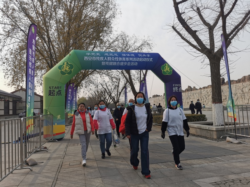 12月6日,由西安市残联、西安市体育局举办的“学党史 感党恩 强体魄 促共享”西安市残疾人群众性体育系列活动启动仪式暨残健融合健步走活动在汉城湖景区举行。碑林区残联组织10名残疾人工作者、残疾人朋友参加活动。