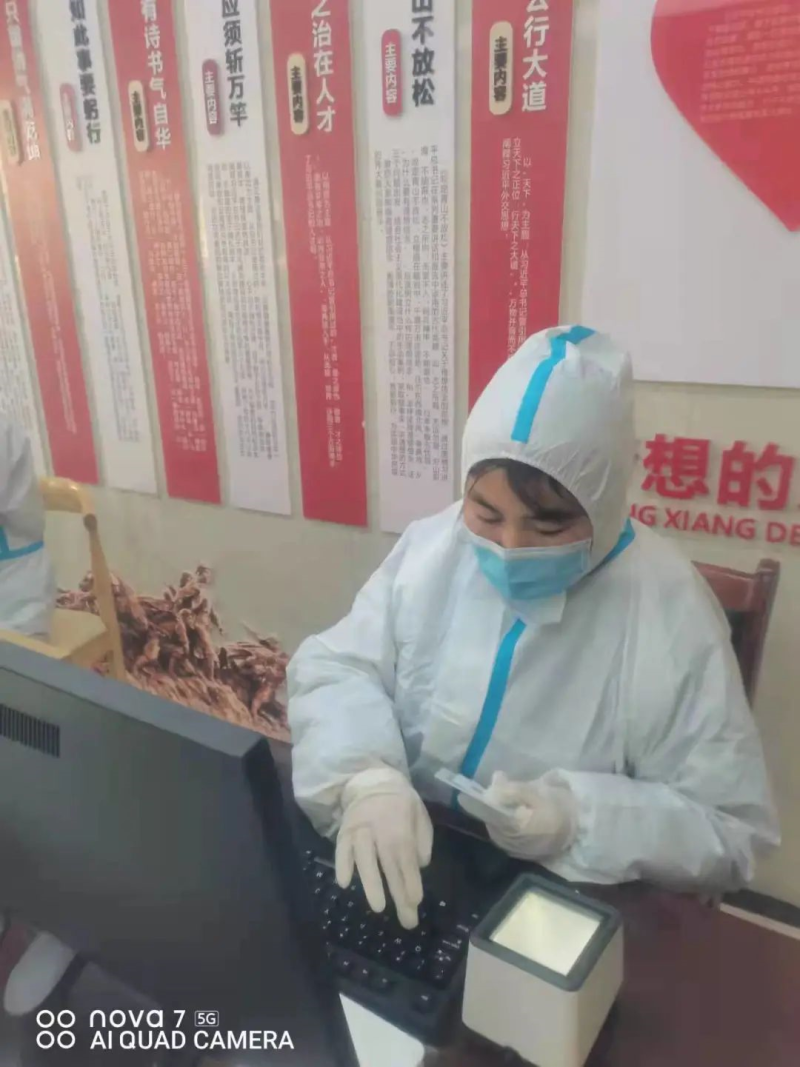 她积极主动的承担起核酸检测证件录入工作,每天一坐就是好几小时,寒风中长时间要戴薄薄的医用手套,每录完一个证件就要用冰冷的消毒液进行手部消毒,长时间反复操作使得手冻得通红、脱皮甚至麻木。
