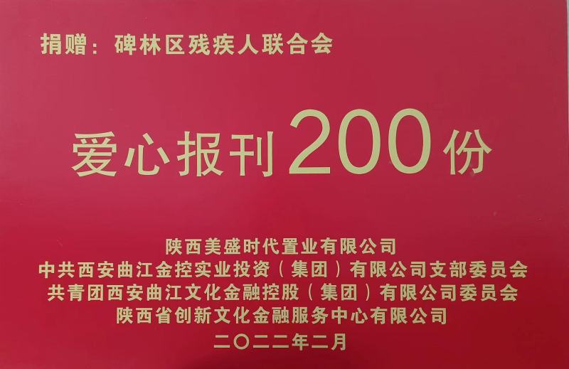 2月21日上午,碑林区“公益送报 扶弱助残”主题活动在碑林区残联举行。碑林区残联联合陕西美盛时代置业有限公司、中共西安曲江金控实业投资(集团)有限公司支部委员会、共青团西安曲江文化金融控股(集团)有限公司委员会、陕西省创新文化金融服务中心有限公司向全区街道残疾人协理员、社区残疾人专职委员、五个残疾人专门协会及优秀残疾人代表捐赠了200张华商报年卡,鼓励残疾人弘扬残疾人自强不息精神,传递社会正能量。