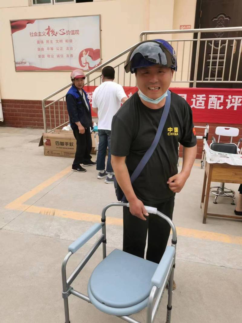草堂街办草市村的闫某,从小因为小儿麻痹行动不便,如厕困难,这次为他适配了1件座便椅,他笑着对旁边的人说:“这东西好得很,解决了很大的困难,感谢党和政府!”