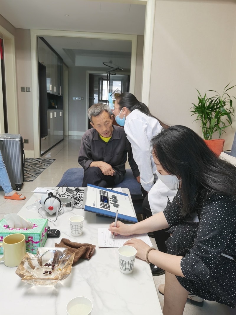 5月7日上午,高新区社会事业服务局工作人员与助听器适配机构专业人员前往兴隆街办高某某家,为其上门做了气骨导听力检查。