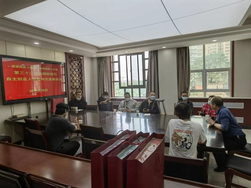 5月11日,在第三十二次全国助残日来临之际,碑林区残联召开全国助残日自主创业人员慰问交流座谈会。邀请10名残疾人自主创业人员分享创业故事,交流创业心得。区残联理事长马红绪、区残联就业中心主任吕阳参加座谈会。