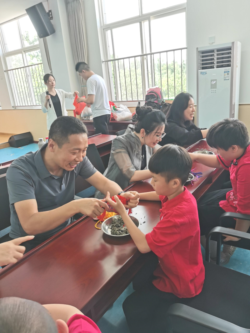 活动现场,来宾们分别向特殊儿童发放蜜儿餐、粽子礼盒等,同时向辛勤付出的老师们发放日护用品,为他们送去节日的祝福。来宾们还与孩子们交流互动,一起制作香包、佩戴五彩绳、“包粽子”,让孩子们感受端午节的传统文化,孩子们幸福的欢笑声回荡在教室里。