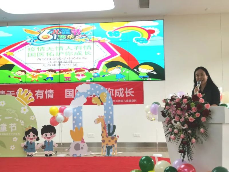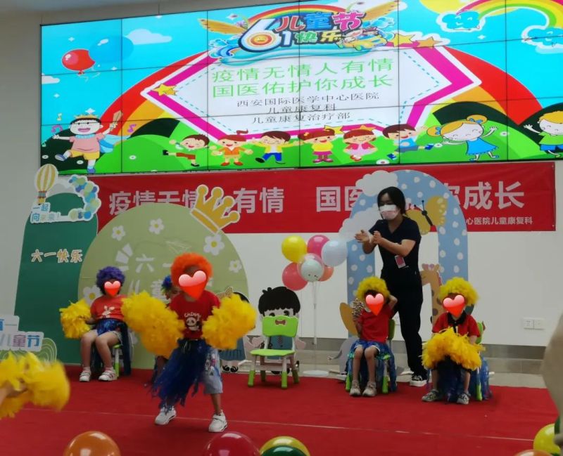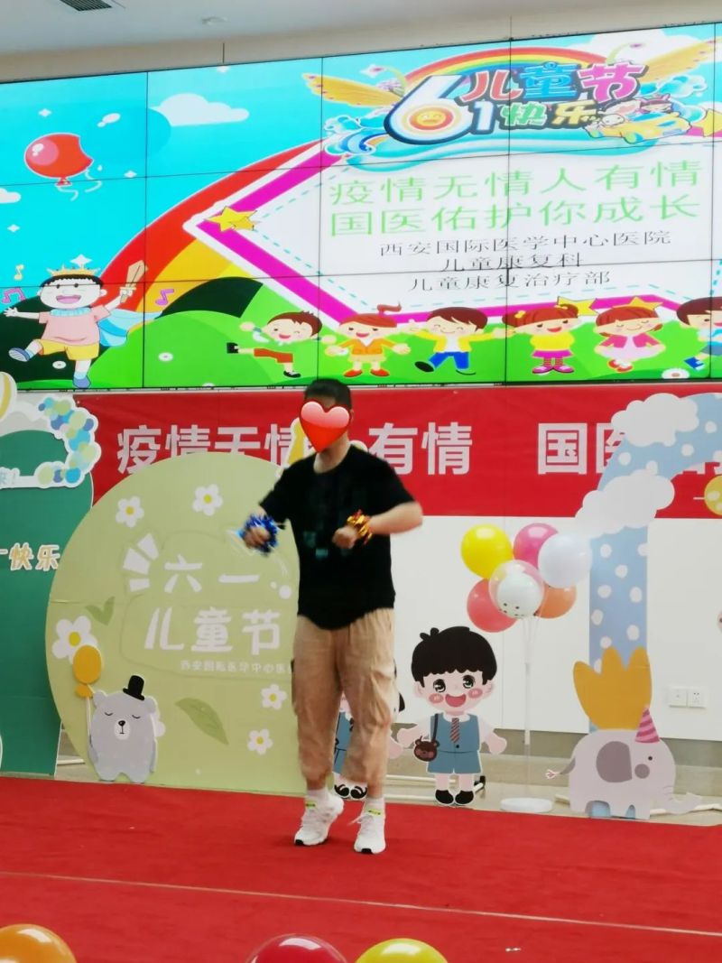为了使辖区做康复训练的特需儿童也能体验到节日的快乐氛围,在“六一”国际儿童节即将到来之际,定点儿童康复机构西安国际医学中心举办了主题儿童节联欢活动,高新区社会事业服务局工作人员、爱心企业代表、50余名特需儿童及家长共同参加活动。