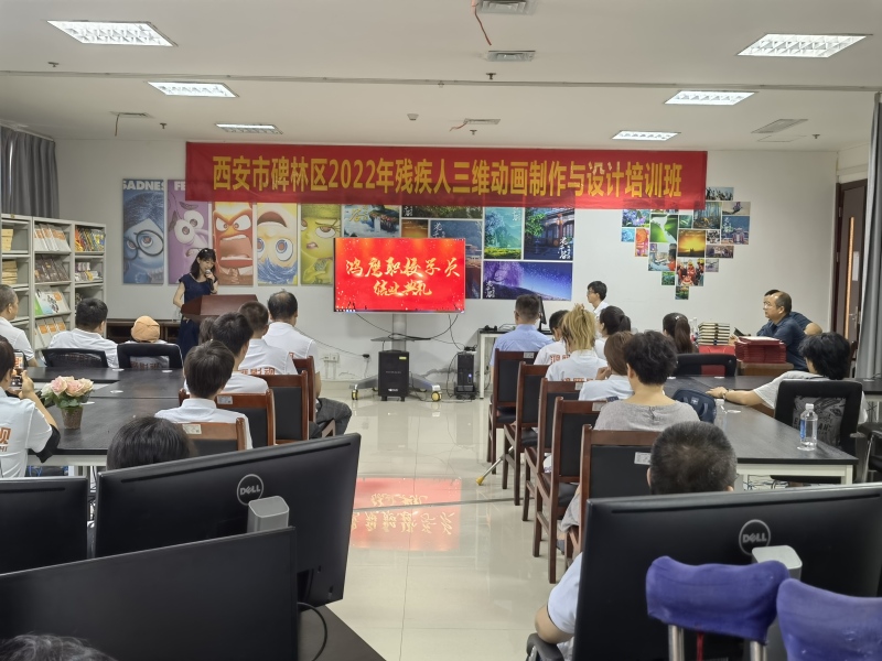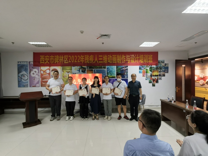 6月30日上午,为期一个月的2022年碑林区残疾人三维动画制作与设计培训班圆满结业,30名残疾人学员通过考试顺利拿到结业证书。碑林区残疾人劳动就业服务中心主任吕阳、西安市雁塔区鸿鹰职业技能培训学校校长王磊参加培训班结业仪式。