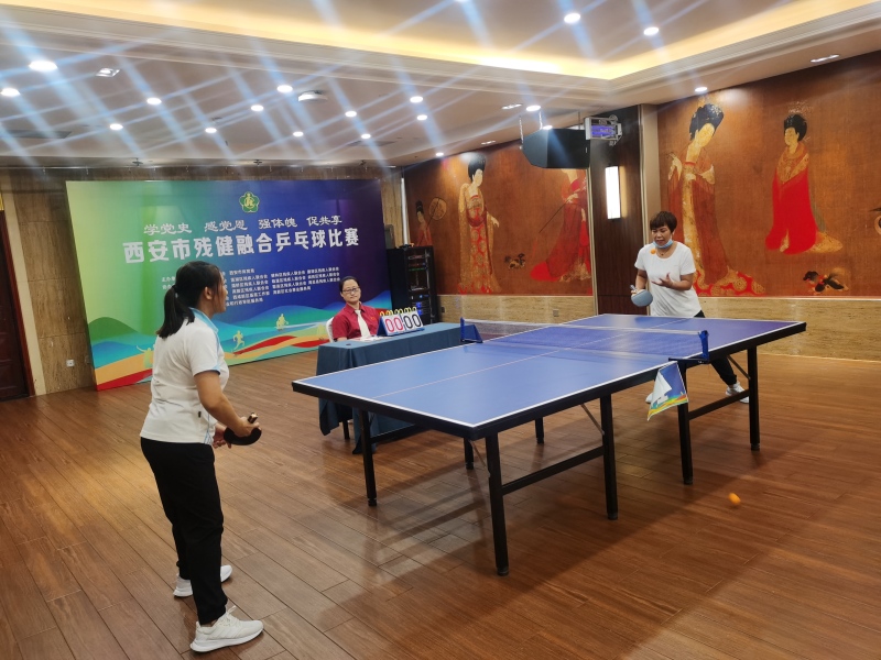 2022年8月5日下午,由西安市残疾人联合会、西安市体育局共同举办的“学党史 感党恩 强体魄 促共享”西安市残健融合乒乓球比赛在唐城宾馆1楼凤鸣宫隆重举行办,国际港务区共派出5名运动员参加了比赛。