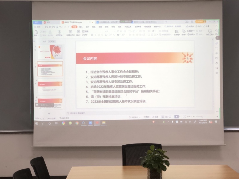 会上,社会事业服务局相关人员传达学习了全市残疾人事业工作会会议精神,对残疾人两项补贴、残疾人证专项治理回头看及2022年家庭医生签约工作进行了安排部署,同时对镇街残联换届、持证残疾人状况调查进行了培训。