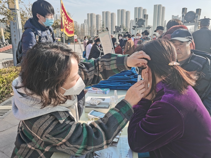 2023年3月3日是第24次全国“爱耳日”,为深入贯彻落实党的二十大精神和党中央、国务院关于实施健康中国战略的重大决策部署,普及听力健康知识,增强全社会听力健康意识,减少、控制听力损失和残疾的发生,3月3日上午长安区残联携手西安工会医院、乐森听见助听器公司围绕以“科学爱耳护耳,实现主动健康”为主题的活动,在长安区韦曲街道鼓乐广场开展了“爱耳日”宣传义诊活动,并在现场设立了义诊咨询点,为广大群众提供免费听力检查、义诊服务。