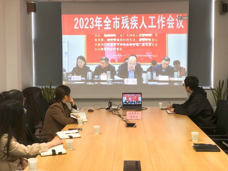 4月7日上午,2023年全市残疾人工作会议以视频形式召开,高新区设置分会场,社会事业服务局残疾人管理服务全体工作人员参加会议。