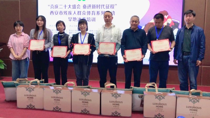 为进一步丰富残疾人精神文化生活,带领残疾人走出家门,增强残疾人身体素质。4月27日至28日,高新区社会事业服务局组织5名残疾人代表参加“喜迎二十大盛会 奋进新时代征程”西安市残疾人群众性体育系列活动,残疾人旱地冰壶培训。
